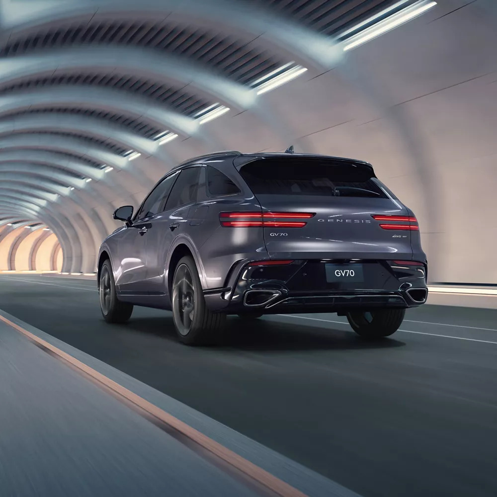 The GV70 exudes self-assured sophistication from its fluid silhouette to its finely tailored–and fully loaded–interior, giving you a uniquely memorable drive.