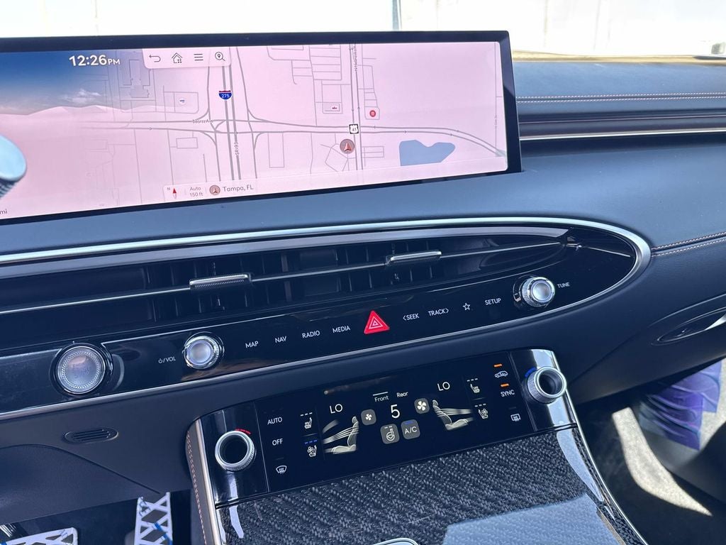 Savile Silver 2026 Genesis GV70 16 Speakers, 4-Wheel Disc Brakes, ABS brakes, Adaptive suspension, Air Conditioning, Alloy wheels, AM/FM radio: SiriusXM, Android Auto & Apple CarPlay, Anti-whiplash front head restraints, Auto High-beam Headlights, Auto-dimming door mirrors, Auto-dimming Rear-View mirror, Automatic temperature control, Brake assist, Bumpers: body-color, Cargo Cover, Cargo Net, Cargo Tray, Delay-off headlights, Driver door bin, Driver vanity mirror, Dual front impact airbags, Dual front side impact airbags, Electronic Stability Control, Emergency communication system: Genesis Connected Services, Exterior Parking Camera Rear, First Aid Kit, Four wheel independent suspension, Front anti-roll bar, Front Bucket Seats, Front Center Armrest w/Storage, Front dual zone A/C, Front reading lights, Fully automatic headlights, Garage door transmitter: HomeLink, Heads-Up Display, Heated and Ventilated Front Bucket Seats, Heated door mirrors, Heated front seats, Heated rear seats, Heated steering wheel, Illuminated entry, Knee airbag, Leather steering wheel, Low tire pressure warning, Memory seat, Nappa Leather Seating Surfaces, Navigation System, NFC Key Card, Occupant sensing airbag, Option Group 01, Outside temperature display, Overhead airbag, Overhead console, Panic alarm, Passenger door bin, Passenger vanity mirror, Power door mirrors, Power driver seat, Power Liftgate, Power moonroof, Power passenger seat, Power steering, Power windows, Radio: 14.5 Navigation System with AM/FM/HD, Rain sensing wipers, Rear air conditioning, Rear anti-roll bar, Rear reading lights, Rear seat center armrest, Rear window defroster, Rear window wiper, Remote keyless entry, Roadside Assistance Kit, Security system, Speed control, Speed-sensing steering, Speed-Sensitive Wipers, Split folding rear seat, Spoiler, Steering wheel memory, Steering wheel mounted audio controls, Tachometer, Telescoping steering wheel, Tilt steering wheel, Traction control, Trip computer, Turn signal indicator mirrors, Variably intermittent wipers, Ventilated front seats, Wheels: 21 Dark Sputtering Alloy.