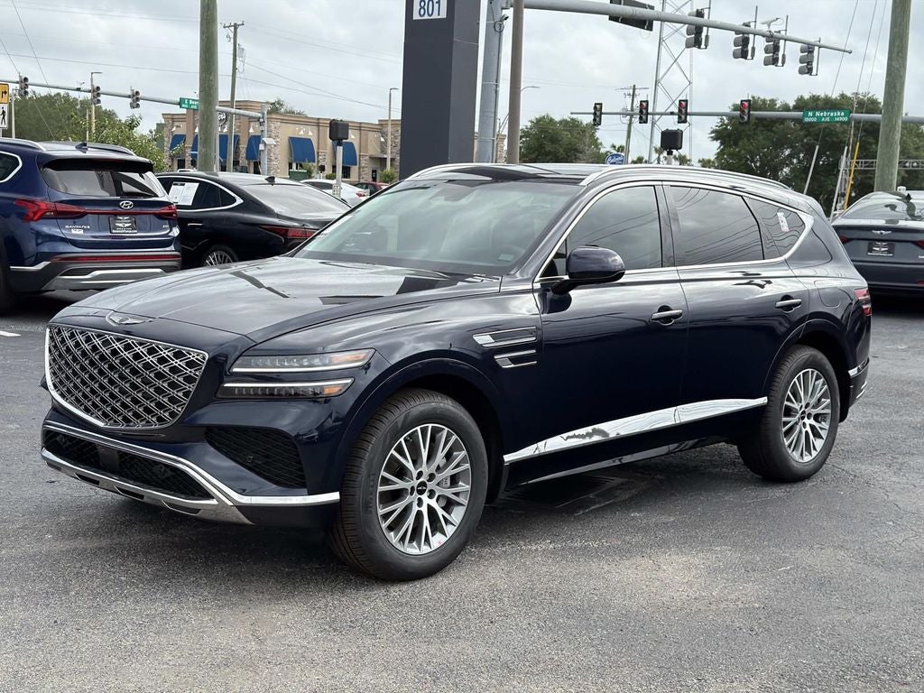 20/26 City/Highway MPG Recent Arrival! Capri Blue 2026 Genesis GV80 12 Speakers, 4-Wheel Disc Brakes, ABS brakes, Air Conditioning, Alloy wheels, AM/FM radio: SiriusXM, Anti-whiplash front head restraints, Auto High-beam Headlights, Auto tilt-away steering wheel, Auto-dimming door mirrors, Auto-dimming Rear-View mirror, Auto-leveling suspension, Automatic temperature control, Brake assist, Bumpers: body-color, Compass, Delay-off headlights, Driver door bin, Driver vanity mirror, Dual front impact airbags, Dual front side impact airbags, Electronic Stability Control, Emergency communication system: Genesis Connected Services, Exterior Parking Camera Rear, Four wheel independent suspension, Fragrance Cartridge, Front and Rear Mudguards, Front anti-roll bar, Front Bucket Seats, Front Center Armrest, Front dual zone A/C, Front reading lights, Fully automatic headlights, Garage door transmitter: HomeLink, Heated door mirrors, Heated Front Bucket Seats, Heated front seats, Illuminated entry, Knee airbag, Leather steering wheel, Leatherette Seating Surfaces, Low tire pressure warning, Memory seat, Navigation System, Occupant sensing airbag, Option Group 01, Outside temperature display, Overhead airbag, Overhead console, Panic alarm, Passenger door bin, Passenger vanity mirror, Power door mirrors, Power driver seat, Power Liftgate, Power passenger seat, Power steering, Power windows, Radio data system, Radio: AM/FM/HD, Rain sensing wipers, Rear air conditioning, Rear anti-roll bar, Rear reading lights, Rear seat center armrest, Rear side impact airbag, Rear window defroster, Rear window wiper, Remote keyless entry, Roof Rack Cross Bars, Security system, Speed control, Speed-sensing steering, Speed-Sensitive Wipers, Split folding rear seat, Spoiler, Steering wheel memory, Steering wheel mounted audio controls, Tachometer, Telescoping steering wheel, Tilt steering wheel, Traction control, Trip computer, Turn signal indicator mirrors, Variably intermittent wipers, Wheels: 19 x 8.5J Medium Metallic Gray Alloy.