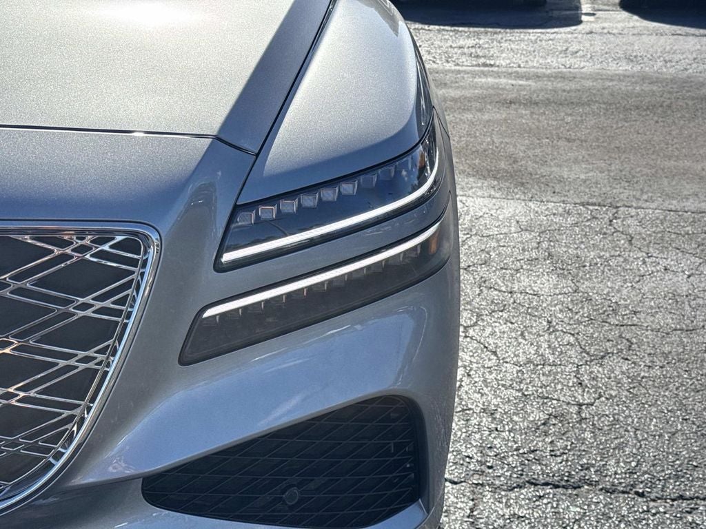 Savile Silver 2026 Genesis GV80 12 Speakers, 4-Wheel Disc Brakes, ABS brakes, Air Conditioning, Alloy wheels, AM/FM radio: SiriusXM, Anti-whiplash front head restraints, Auto High-beam Headlights, Auto tilt-away steering wheel, Auto-dimming door mirrors, Auto-dimming Rear-View mirror, Auto-leveling suspension, Automatic temperature control, Brake assist, Bumpers: body-color, Compass, Delay-off headlights, Driver door bin, Driver vanity mirror, Dual front impact airbags, Dual front side impact airbags, Electronic Stability Control, Emergency communication system: Genesis Connected Services, Exterior Parking Camera Rear, First Aid Kit, Four wheel independent suspension, Fragrance Cartridge, Front anti-roll bar, Front Bucket Seats, Front Center Armrest, Front dual zone A/C, Front reading lights, Fully automatic headlights, Garage door transmitter: HomeLink, Genuine wood console insert, Genuine wood dashboard insert, Genuine wood door panel insert, Heated door mirrors, Heated Front Bucket Seats, Heated front seats, Heated steering wheel, Illuminated entry, Knee airbag, Leather steering wheel, Leatherette Seating Surfaces, Low tire pressure warning, Memory seat, Navigation System, NFC Key Card, Occupant sensing airbag, Option Group 01, Outside temperature display, Overhead airbag, Overhead console, Panic alarm, Passenger door bin, Passenger vanity mirror, Power door mirrors, Power driver seat, Power Liftgate, Power moonroof, Power passenger seat, Power steering, Power windows, Radio data system, Radio: AM/FM/HD, Rain sensing wipers, Rear air conditioning, Rear anti-roll bar, Rear reading lights, Rear seat center armrest, Rear side impact airbag, Rear window defroster, Rear window wiper, Remote keyless entry, Roof Rack Cross Bars, Security system, Speed control, Speed-sensing steering, Speed-Sensitive Wipers, Split folding rear seat, Spoiler, Steering wheel memory, Steering wheel mounted audio controls, Tachometer, Telescoping steering wheel, Tilt steering wheel, Traction control, Trip computer, Turn signal indicator mirrors, Variably intermittent wipers, Wheels: 20 x 8.5J Dark Gray Matte Alloy.