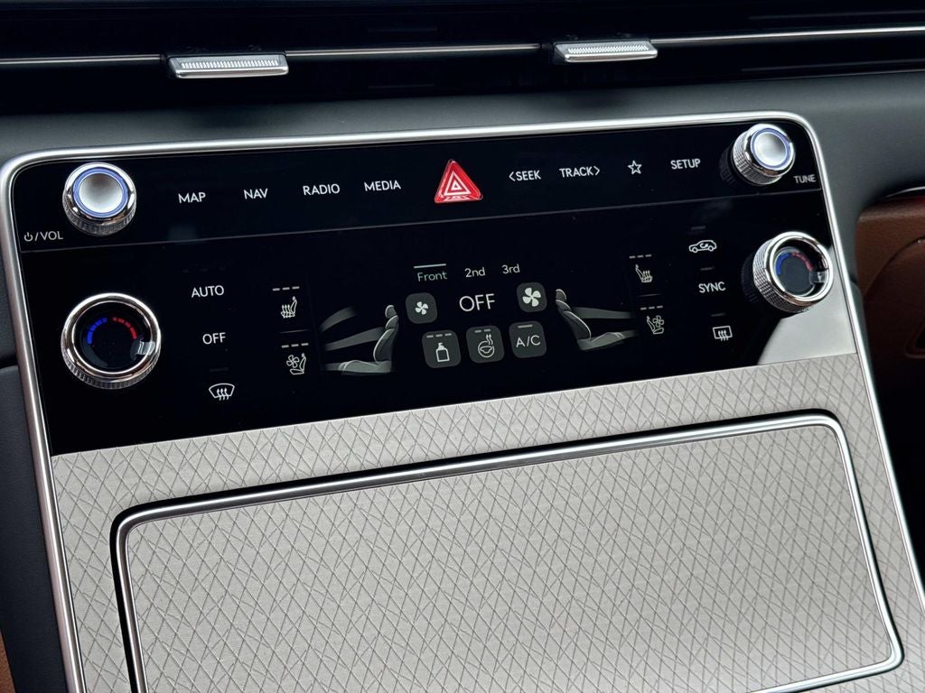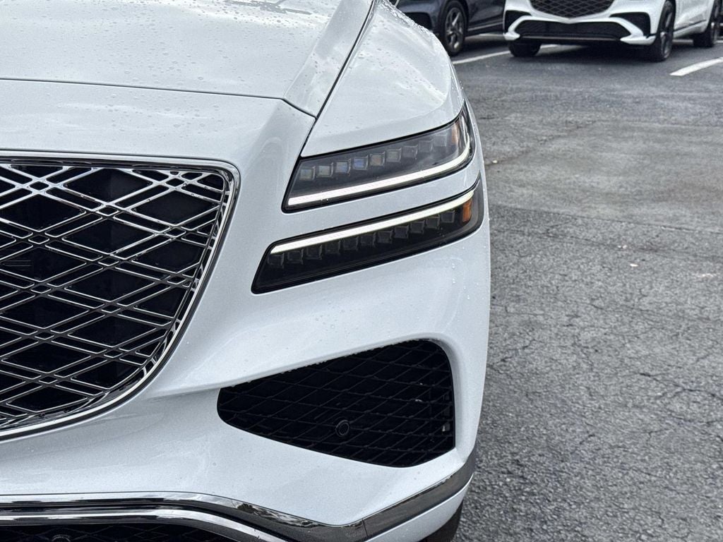 Alta White 2026 Genesis GV80 18 Speakers, 3rd row seats: split-bench, 4-Wheel Disc Brakes, ABS brakes, Adaptive suspension, Air Conditioning, Alloy wheels, AM/FM radio: SiriusXM, Anti-whiplash front head restraints, Auto High-beam Headlights, Auto tilt-away steering wheel, Auto-dimming door mirrors, Auto-dimming Rear-View mirror, Automatic temperature control, Brake assist, Bumpers: body-color, Cargo Net, Compass, Delay-off headlights, Driver door bin, Driver vanity mirror, Dual front impact airbags, Dual front side impact airbags, Electronic Stability Control, Emergency communication system: Genesis Connected Services, Exterior Parking Camera Rear, First Aid Kit, Four wheel independent suspension, Fragrance Cartridge, Front anti-roll bar, Front Bucket Seats, Front Center Armrest, Front dual zone A/C, Front reading lights, Fully automatic headlights, Garage door transmitter: HomeLink, Genuine wood console insert, Genuine wood dashboard insert, Genuine wood door panel insert, Heads-Up Display, Heated and Ventilated Front Bucket Seats, Heated door mirrors, Heated front seats, Heated rear seats, Heated steering wheel, Illuminated entry, Knee airbag, Leather steering wheel, Low tire pressure warning, Memory seat, Nappa Leather Seating Surfaces, Navigation System, NFC Key Card, Occupant sensing airbag, Option Group 01, Outside temperature display, Overhead airbag, Overhead console, Panic alarm, Passenger door bin, Passenger vanity mirror, Power door mirrors, Power driver seat, Power Liftgate, Power moonroof, Power passenger seat, Power steering, Power windows, Radio data system, Radio: AM/FM/HD Bose Premium Sound System, Rain sensing wipers, Rear air conditioning, Rear anti-roll bar, Rear dual zone A/C, Rear reading lights, Rear seat center armrest, Rear side impact airbag, Rear window defroster, Rear window wiper, Reclining 3rd row seat, Remote keyless entry, Security system, Speed control, Speed-sensing steering, Speed-Sensitive Wipers, Split folding rear seat, Spoiler, Steering wheel memory, Steering wheel mounted audio controls, Tachometer, Telescoping steering wheel, Tilt steering wheel, Tow Hitch, Traction control, Trip computer, Turn signal indicator mirrors, Variably intermittent wipers, Ventilated front seats, Ventilated rear seats, Wheels: 22 x 9.5J Dark Gray Matte Alloy.