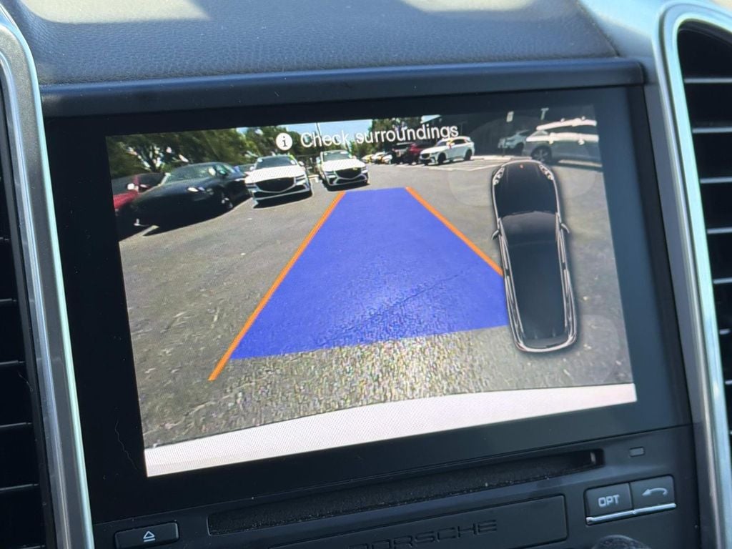 Leather, 4-Wheel Disc Brakes, ABS brakes, Air Conditioning, Alloy wheels, AM/FM radio: SiriusXM, Automatic temperature control, Axle Ratio: 3.27, Brake assist, Bumpers: body-color, CD player, Delay-off headlights, Driver door bin, Driver vanity mirror, Dual front impact airbags, Dual front side impact airbags, DVD-Audio, Electronic Stability Control, Four wheel independent suspension, Front anti-roll bar, Front Bucket Seats, Front Center Armrest, Front dual zone A/C, Front fog lights, Front reading lights, Fully automatic headlights, Garage door transmitter: HomeLink, Heated door mirrors, High intensity discharge headlights: Bi-Xenon, Illuminated entry, Knee airbag, Leather Shift Knob, Low tire pressure warning, Navigation System, Occupant sensing airbag, Outside temperature display, Overhead airbag, Overhead console, Panic alarm, Passenger door bin, Passenger vanity mirror, Porsche Communication Management, Power door mirrors, Power driver seat, Power Liftgate, Power passenger seat, Power steering, Power windows, Radio data system, Rain sensing wipers, Rear anti-roll bar, Rear fog lights, Rear reading lights, Rear seat center armrest, Rear side impact airbag, Rear window defroster, Rear window wiper, Remote keyless entry, Security system, Speed control, Split folding rear seat, Spoiler, Sport steering wheel, Steering wheel mounted audio controls, Tachometer, Telescoping steering wheel, Tilt steering wheel, Traction control, Trip computer, Variably intermittent wipers, Wheels: 18 Cayenne, Leather.
