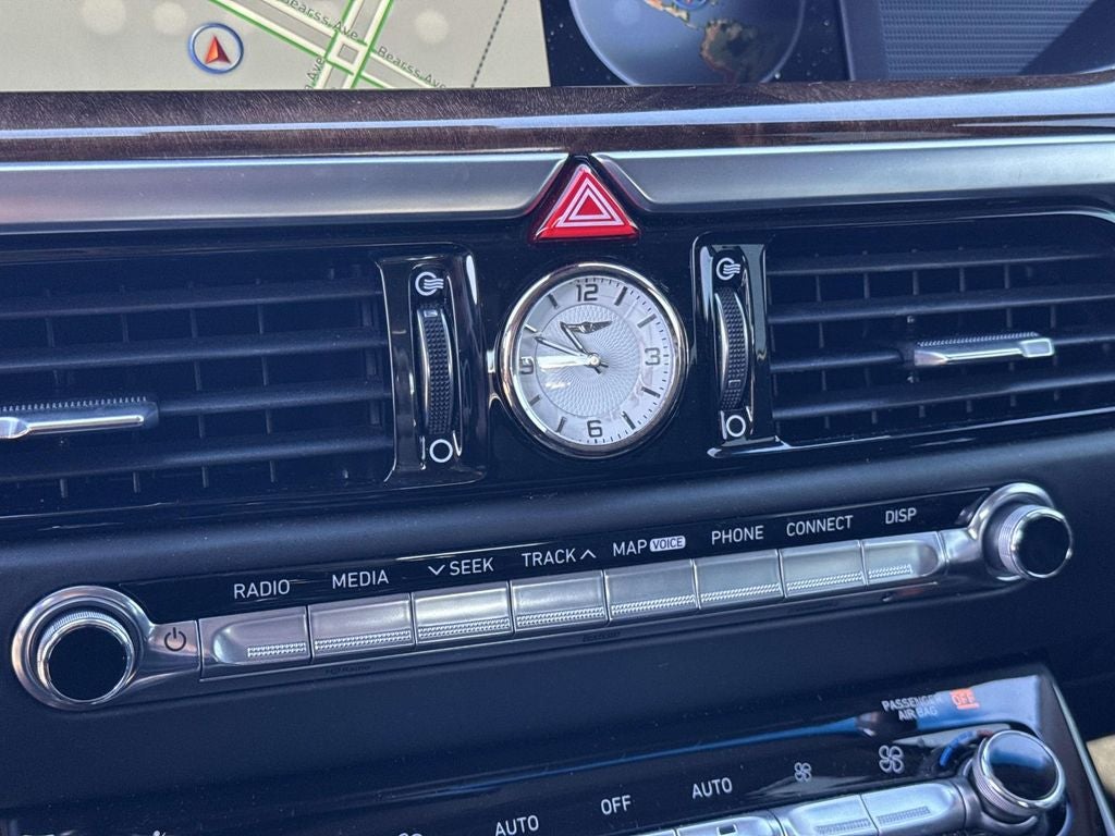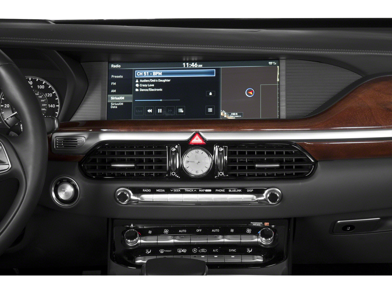 17 Speakers, 4-Wheel Disc Brakes, ABS brakes, Adaptive suspension, Air Conditioning, Alloy wheels, AM/FM radio: SiriusXM, Anti-whiplash front head restraints, Auto High-beam Headlights, Auto tilt-away steering wheel, Auto-dimming door mirrors, Auto-dimming Rear-View mirror, Auto-leveling suspension, Automatic temperature control, Brake assist, Bumpers: body-color, Compass, Delay-off headlights, Door auto-latch, Driver door bin, Driver vanity mirror, Dual front impact airbags, Dual front side impact airbags, DVD-Audio, Electronic Stability Control, Emergency communication system: Genesis Connected Services, Four wheel independent suspension, Front anti-roll bar, Front Bucket Seats, Front Center Armrest, Front dual zone A/C, Front reading lights, Fully automatic headlights, Garage door transmitter: HomeLink, Genuine wood dashboard insert, Genuine wood door panel insert, Head restraints memory, Heads-Up Display, Heated & Ventilated Front Bucket Seats w/Memory, Heated door mirrors, Heated front seats, Heated rear seats, Heated steering wheel, Illuminated entry, Knee airbag, Leather Shift Knob, Leather steering wheel, Low tire pressure warning, Memory seat, Nappa Leather Seating Surfaces, Navigation System, Occupant sensing airbag, Outside temperature display, Overhead airbag, Overhead console, Panic alarm, Passenger door bin, Passenger vanity mirror, Power adjustable front head restraints, Power adjustable rear head restraints, Power door mirrors, Power driver seat, Power moonroof, Power passenger seat, Power steering, Power windows, Radio data system, Radio: AM/FM/HD/SiriusXM/CD/DVD Audio System, Rain sensing wipers, Rear air conditioning, Rear anti-roll bar, Rear reading lights, Rear seat center armrest, Rear side impact airbag, Rear Window Blind, Rear window defroster, Remote CD player, Remote keyless entry, Security system, Speed control, Speed-sensing steering, Speed-Sensitive Wipers, Steering wheel memory, Steering wheel mounted audio controls, Tachometer, Telescoping steering wheel, Tilt steering wheel, Traction control, Trip computer, Turn signal indicator mirrors, Variably intermittent wipers, Ventilated front seats, Ventilated rear seats, Wheels: 19 Chrome Alloy.