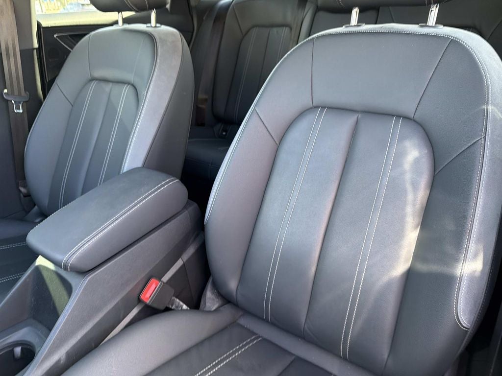 8 Speakers, ABS brakes, Air Conditioning, Alloy wheels, Auto High-beam Headlights, Automatic temperature control, Brake assist, Bumpers: body-color, Delay-off headlights, Driver door bin, Driver vanity mirror, Dual front impact airbags, Dual front side impact airbags, Electronic Stability Control, Emergency communication system: Audi connect CARE, Exterior Parking Camera Rear, Four wheel independent suspension, Front anti-roll bar, Front Bucket Seats, Front Center Armrest, Front dual zone A/C, Front reading lights, Fully automatic headlights, Genuine wood dashboard insert, Heated door mirrors, Heated Front Seats, Heated front seats, Illuminated entry, Leather Seating Surfaces, Leather steering wheel, Low tire pressure warning, Occupant sensing airbag, Outside temperature display, Overhead airbag, Overhead console, Panic alarm, Passenger door bin, Passenger vanity mirror, Power door mirrors, Power driver seat, Power Liftgate, Power moonroof: Panoramic, Power steering, Power windows, Radio data system, Radio: Audi Sound System, Rain sensing wipers, Rear air conditioning, Rear anti-roll bar, Rear reading lights, Rear seat center armrest, Rear window defroster, Rear window wiper, Remote keyless entry, Security system, Speed control, Speed-sensing steering, Split folding rear seat, Spoiler, Steering wheel mounted audio controls, TBD Axle Ratio, Telescoping steering wheel, Tilt steering wheel, Traction control, Trip computer, Turn signal indicator mirrors, Variably intermittent wipers, Wheels: 19 5-Arm Design.