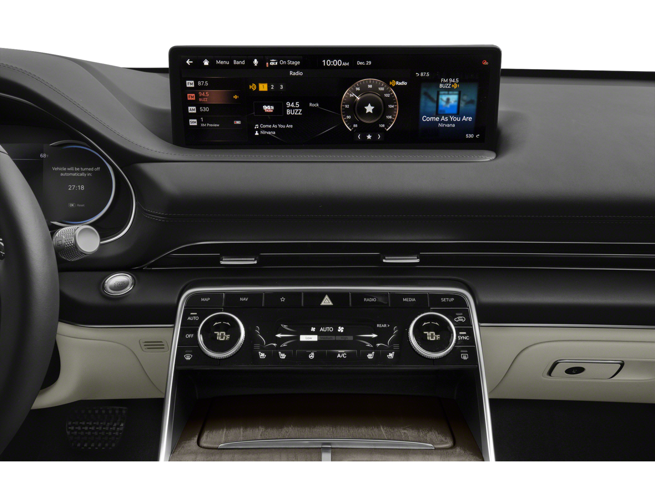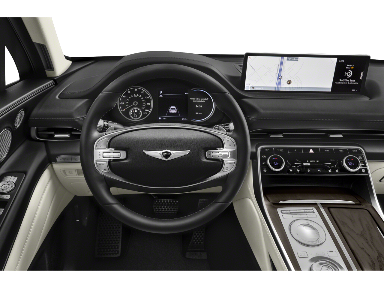 12 Speakers, 4-Wheel Disc Brakes, 4.363 Axle Ratio, ABS brakes, Air Conditioning, Alloy wheels, AM/FM radio: SiriusXM, Android Auto & Apple CarPlay, Anti-whiplash front head restraints, Auto High-beam Headlights, Auto tilt-away steering wheel, Auto-dimming door mirrors, Auto-dimming Rear-View mirror, Auto-leveling suspension, Automatic temperature control, Brake assist, Bumpers: body-color, Compass, Delay-off headlights, Driver door bin, Driver vanity mirror, Dual front impact airbags, Dual front side impact airbags, Electronic Stability Control, Emergency communication system: Genesis Connected Services, Exterior Parking Camera Rear, Four wheel independent suspension, Front anti-roll bar, Front Bucket Seats, Front Center Armrest, Front dual zone A/C, Front reading lights, Fully automatic headlights, Garage door transmitter: HomeLink, Genuine wood console insert, Genuine wood dashboard insert, Genuine wood door panel insert, Heated door mirrors, Heated Front Bucket Seats, Heated front seats, Heated steering wheel, Illuminated entry, Knee airbag, Leather steering wheel, Leatherette Seating Surfaces, Low tire pressure warning, Memory seat, Navigation System, Occupant sensing airbag, Outside temperature display, Overhead airbag, Overhead console, Panic alarm, Passenger door bin, Passenger vanity mirror, Power door mirrors, Power driver seat, Power Liftgate, Power passenger seat, Power steering, Power windows, Radio data system, Radio: AM/FM/SiriusXM/HD Audio System, Rain sensing wipers, Rear air conditioning, Rear anti-roll bar, Rear reading lights, Rear seat center armrest, Rear side impact airbag, Rear window defroster, Rear window wiper, Remote keyless entry, Security system, Speed control, Speed-sensing steering, Speed-Sensitive Wipers, Split folding rear seat, Spoiler, Steering wheel memory, Steering wheel mounted audio controls, Tachometer, Telescoping steering wheel, Tilt steering wheel, Traction control, Trip computer, Turn signal indicator mirrors, Variably intermittent wipers, Wheels: 19 x 8.5J Medium Metallic Gray Alloy.