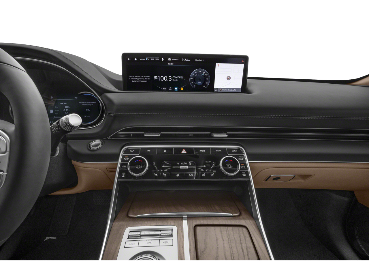 12 Speakers, 4-Wheel Disc Brakes, 4.363 Axle Ratio, ABS brakes, Air Conditioning, Alloy wheels, AM/FM radio: SiriusXM, Android Auto & Apple CarPlay, Anti-whiplash front head restraints, Auto High-beam Headlights, Auto tilt-away steering wheel, Auto-dimming door mirrors, Auto-dimming Rear-View mirror, Auto-leveling suspension, Automatic temperature control, Brake assist, Bumpers: body-color, Compass, Delay-off headlights, Driver door bin, Driver vanity mirror, Dual front impact airbags, Dual front side impact airbags, Electronic Stability Control, Emergency communication system: Genesis Connected Services, Exterior Parking Camera Rear, Four wheel independent suspension, Front anti-roll bar, Front Bucket Seats, Front Center Armrest, Front dual zone A/C, Front reading lights, Fully automatic headlights, Garage door transmitter: HomeLink, Genuine wood console insert, Genuine wood dashboard insert, Genuine wood door panel insert, Heated door mirrors, Heated Front Bucket Seats, Heated front seats, Heated steering wheel, Illuminated entry, Knee airbag, Leather steering wheel, Leatherette Seating Surfaces, Low tire pressure warning, Memory seat, Navigation System, Occupant sensing airbag, Outside temperature display, Overhead airbag, Overhead console, Panic alarm, Passenger door bin, Passenger vanity mirror, Power door mirrors, Power driver seat, Power Liftgate, Power passenger seat, Power steering, Power windows, Radio data system, Radio:14.5 Navigation System w/AM/FM/HD Radio, Rain sensing wipers, Rear air conditioning, Rear anti-roll bar, Rear reading lights, Rear seat center armrest, Rear side impact airbag, Rear window defroster, Rear window wiper, Remote keyless entry, Security system, Speed control, Speed-sensing steering, Speed-Sensitive Wipers, Split folding rear seat, Spoiler, Steering wheel memory, Steering wheel mounted audio controls, Tachometer, Telescoping steering wheel, Tilt steering wheel, Traction control, Trip computer, Turn signal indicator mirrors, Variably intermittent wipers, Wheels: 19 x 8.5J Medium Metallic Gray Alloy.
