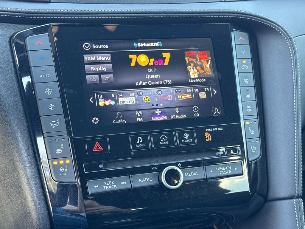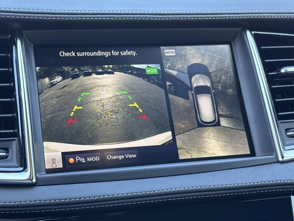 12 Speakers, 4-Wheel Disc Brakes, 5.846 Axle Ratio, ABS brakes, Air Conditioning, Alloy wheels, AM/FM radio: SiriusXM, Auto High-beam Headlights, Auto-dimming Rear-View mirror, Automatic temperature control, Bose Premium Audio System, Brake assist, Bumpers: body-color, Cargo Package, CD player, Climate Controlled Front Bucket Seats, Delay-off headlights, Driver door bin, Driver vanity mirror, Dual front impact airbags, Dual front side impact airbags, Electronic Stability Control, Emergency communication system: INFINITI InTouch (1-year complimentary trial), Exterior Parking Camera Rear, Floor Mats, Four wheel independent suspension, Front anti-roll bar, Front Bucket Seats, Front Center Armrest, Front dual zone A/C, Front fog lights, Front reading lights, Fully automatic headlights, Garage door transmitter: HomeLink, Heated door mirrors, Heated front seats, Heated steering wheel, Illuminated entry, Illuminated Kick Plates, Knee airbag, Leather Shift Knob, Leather steering wheel, Literature Kit, Low tire pressure warning, Memory seat, Navigation system: INFINITI InTouch Navigation, Occupant sensing airbag, Outside temperature display, Overhead airbag, Overhead console, Panic alarm, Passenger door bin, Passenger vanity mirror, Power door mirrors, Power driver seat, Power Liftgate, Power moonroof, Power passenger seat, Power steering, Power windows, Radio data system, Rear anti-roll bar, Rear reading lights, Rear seat center armrest, Rear side impact airbag, Rear window defroster, Rear window wiper, Remote keyless entry, Security system, Semi-Aniline Leather-Appointed Seat Trim, Speed control, Speed-sensing steering, Speed-Sensitive Wipers, Splash Guards (Set of 4), Split folding rear seat, Spoiler, Steering wheel mounted audio controls, Tachometer, Telescoping steering wheel, Tilt steering wheel, Traction control, Trip computer, Turn signal indicator mirrors, Variably intermittent wipers, Ventilated front seats, Wheels: 20 Dark-Painted Machine-Finished Alloy.