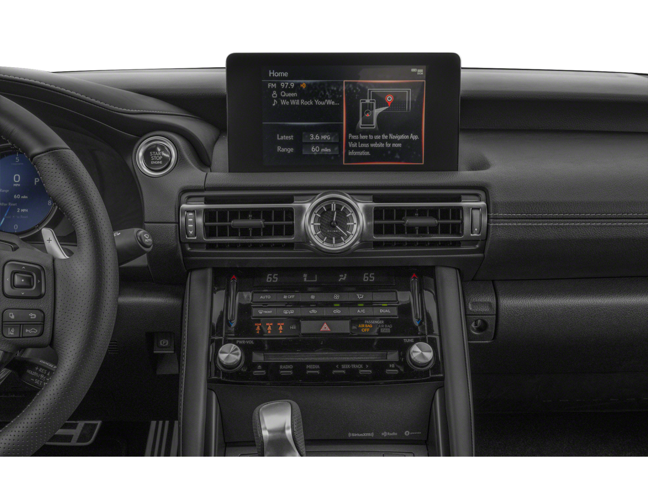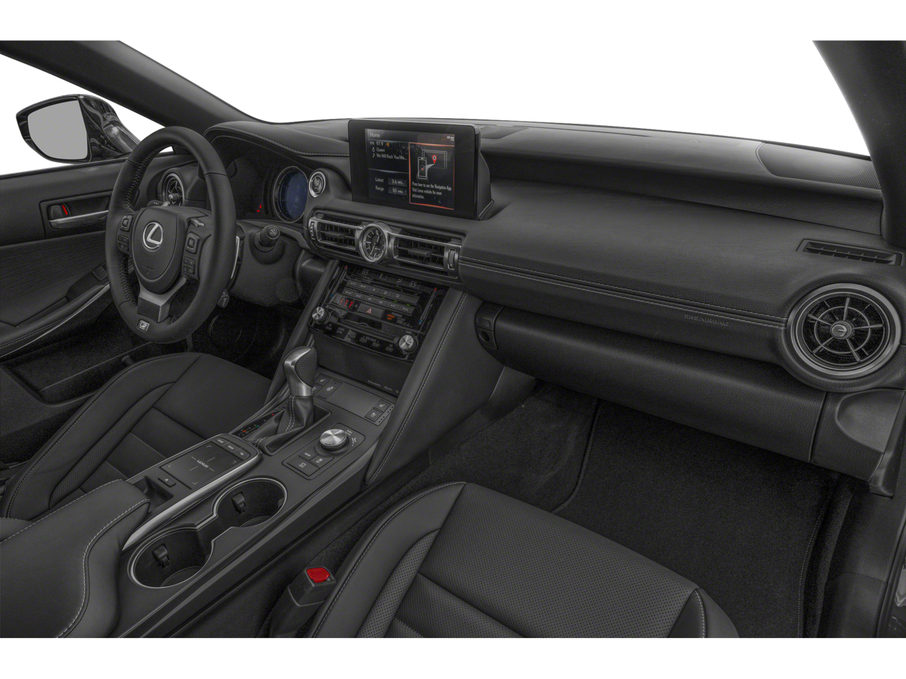 10 Speakers, 19 Wheels, 4-Wheel Disc Brakes, ABS brakes, Air Conditioning, Alloy wheels, AM/FM radio: SiriusXM, Apple CarPlay/Android Auto, Auto High-beam Headlights, Auto-dimming door mirrors, Auto-dimming Rear-View mirror, Automatic temperature control, Brake assist, Bumpers: body-color, CD player, Compass, Delay-off headlights, Driver door bin, Driver vanity mirror, Dual front impact airbags, Dual front side impact airbags, Electronic Stability Control, Emergency communication system: Safety Connect (3-year trial), Exterior Parking Camera Rear, Four wheel independent suspension, Front anti-roll bar, Front Bucket Seats, Front Center Armrest, Front dual zone A/C, Front fog lights, Front reading lights, Fully automatic headlights, Garage door transmitter: HomeLink, Heated & Ventilated F SPORT Seats, Heated door mirrors, Heated front seats, Heated steering wheel, Illuminated entry, Knee airbag, Leather Shift Knob, Leather steering wheel, Low tire pressure warning, Occupant sensing airbag, Outside temperature display, Overhead airbag, Overhead console, Panic alarm, Passenger door bin, Passenger vanity mirror, Perforated NuLuxe Seat Trim, Power door mirrors, Power driver seat, Power passenger seat, Power steering, Power windows, Radio data system, Radio: Multimedia System w/8 Color Touchscreen, Rain sensing wipers, Rear anti-roll bar, Rear reading lights, Rear seat center armrest, Rear side impact airbag, Rear window defroster, Remote keyless entry, Security system, Speed control, Speed-sensing steering, Speed-Sensitive Wipers, Split folding rear seat, Spoiler, Sport steering wheel, Steering wheel mounted audio controls, Tachometer, Telescoping steering wheel, Tilt steering wheel, Traction control, Trip computer, Turn signal indicator mirrors, Variably intermittent wipers, Ventilated front seats.