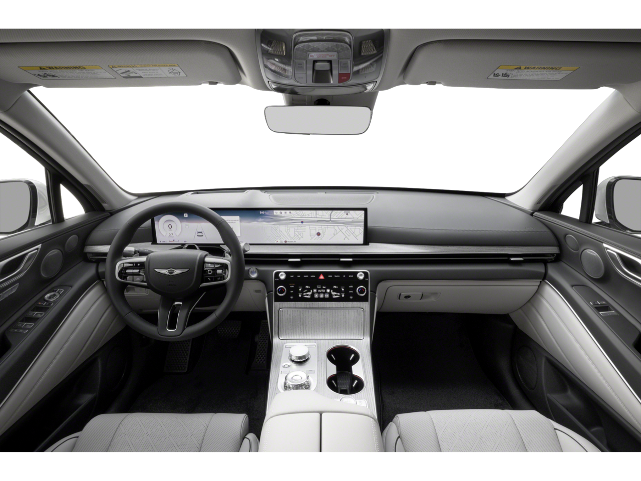 18 Speakers, 4-Wheel Disc Brakes, ABS brakes, Adaptive suspension, Air Conditioning, Alloy wheels, AM/FM radio: SiriusXM, Anti-whiplash front head restraints, Auto High-beam Headlights, Auto tilt-away steering wheel, Auto-dimming door mirrors, Auto-dimming Rear-View mirror, Automatic temperature control, Brake assist, Bumpers: body-color, Compass, Delay-off headlights, Driver door bin, Driver vanity mirror, Dual front impact airbags, Dual front side impact airbags, Electronic Stability Control, Emergency communication system: Genesis Connected Services, Exterior Parking Camera Rear, Four wheel independent suspension, Front anti-roll bar, Front Bucket Seats, Front Center Armrest, Front dual zone A/C, Front reading lights, Fully automatic headlights, Garage door transmitter: HomeLink, Genuine wood console insert, Genuine wood dashboard insert, Genuine wood door panel insert, Heads-Up Display, Heated & Ventilated Front Bucket Seats, Heated door mirrors, Heated front seats, Heated rear seats, Heated steering wheel, Illuminated entry, Knee airbag, Leather steering wheel, Low tire pressure warning, Memory seat, Nappa Leather Seating Surfaces, Navigation System, Occupant sensing airbag, Option Group 01, Outside temperature display, Overhead airbag, Overhead console, Panic alarm, Passenger door bin, Passenger vanity mirror, Power door mirrors, Power driver seat, Power Liftgate, Power moonroof, Power passenger seat, Power steering, Power windows, Radio data system, Radio: AM/FM/SiriusXM/HD Bang & Olufsen Sound Sys, Rain sensing wipers, Rear air conditioning, Rear anti-roll bar, Rear reading lights, Rear seat center armrest, Rear side impact airbag, Rear window defroster, Rear window wiper, Remote keyless entry, Security system, Speed control, Speed-sensing steering, Speed-Sensitive Wipers, Split folding rear seat, Spoiler, Steering wheel memory, Steering wheel mounted audio controls, Tachometer, Telescoping steering wheel, Tilt steering wheel, Traction control, Trip computer, Turn signal indicator mirrors, Variably intermittent wipers, Ventilated front seats, Ventilated rear seats, Wheels: 22 x 9.5J Dark Gray Matte Alloy.